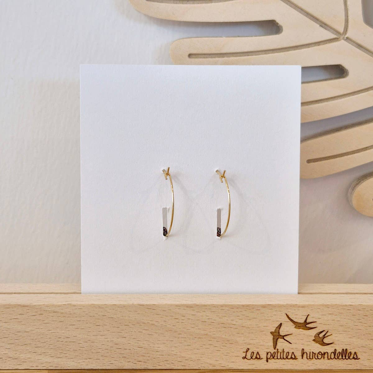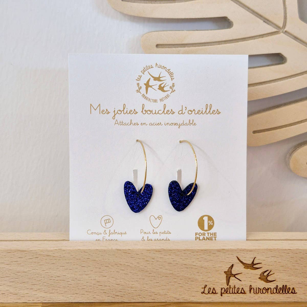 Ces boucles d'oreilles créoles sont en feutrine pailletée avec une attache en acier inoxydable.