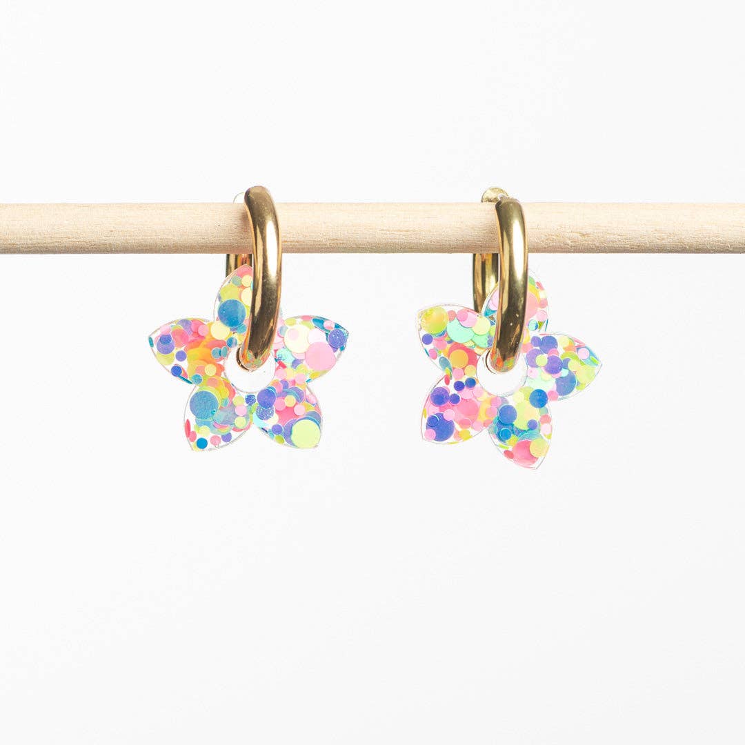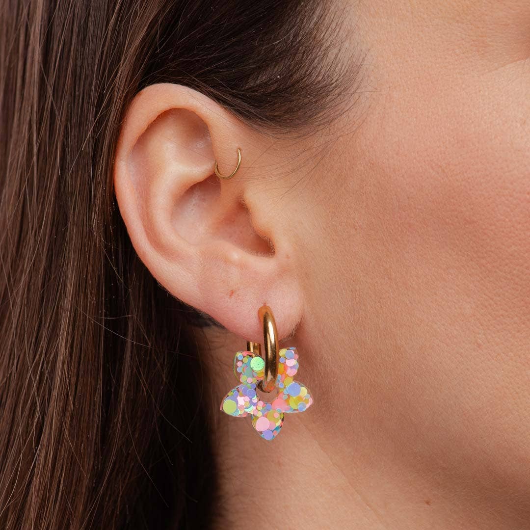 Adoptez un style tendance et audacieux avec les Créoles , remplies de paillettes aux couleurs vives inspirées par la mode pop et glamour.