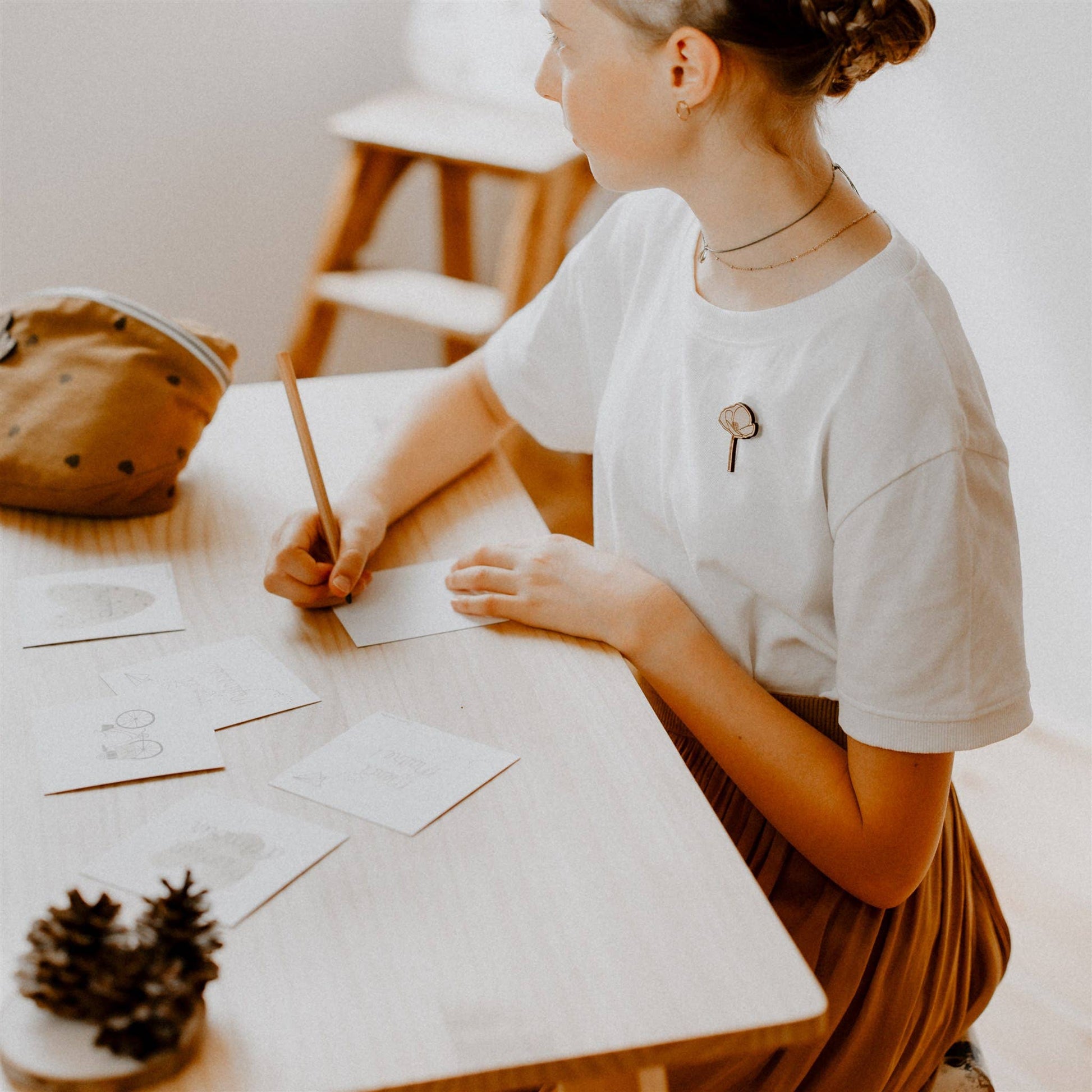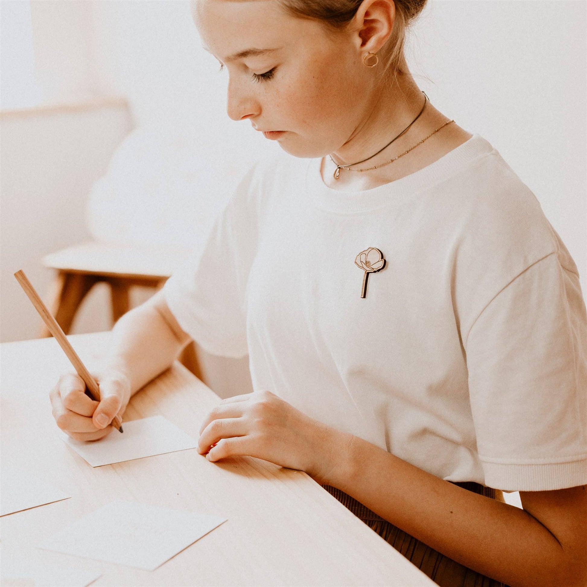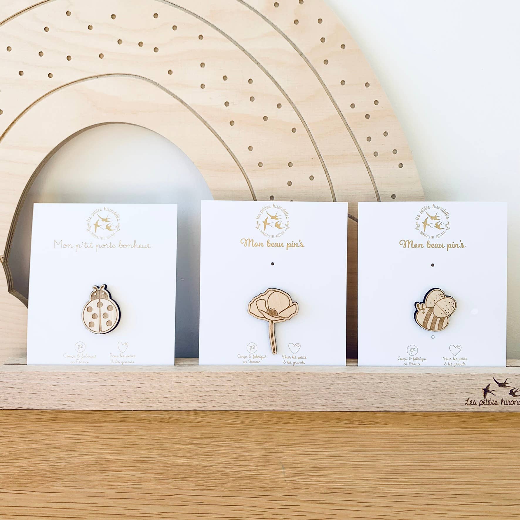 Quand une petite touche de nature et de poésie s’invite sur un joli pull, un chapeau ou un sac ! Ce pin's est en bois, avec une attache métallique. Il a été dessiné et fabriqué en France.